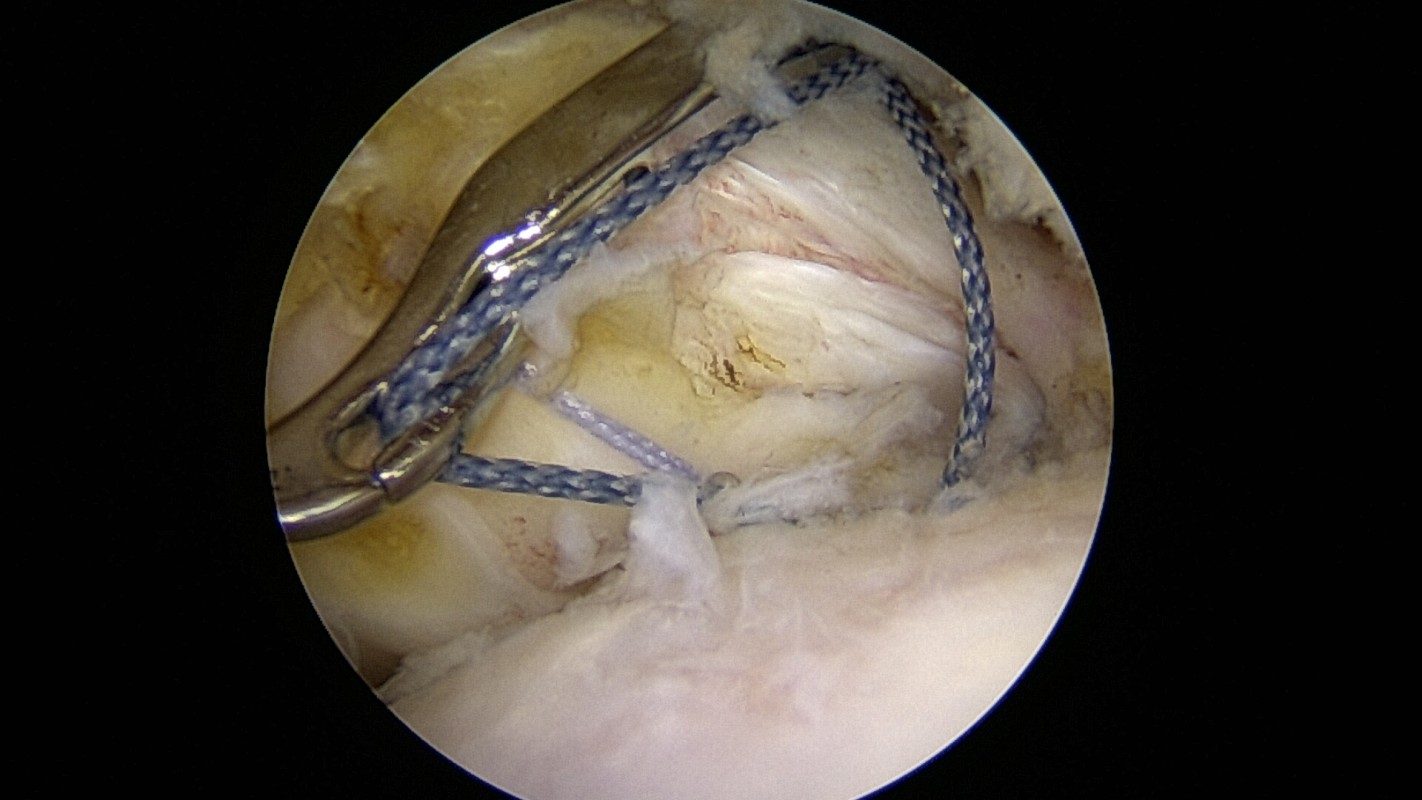 Le trou constitué est de petite taille et sera vraisemblablement facile à combler en tirant sur le tendon rétracté et en le fixant sur son empreinte osseuse normale.