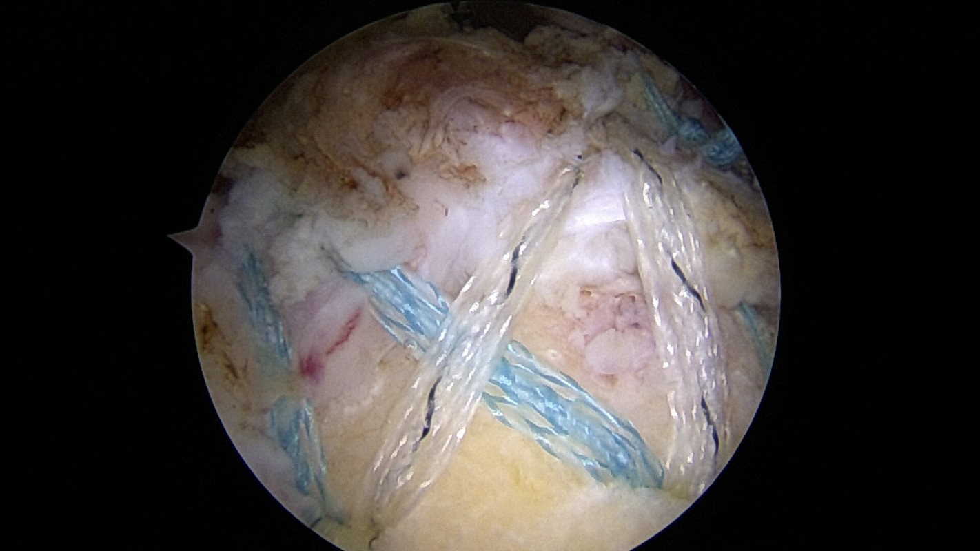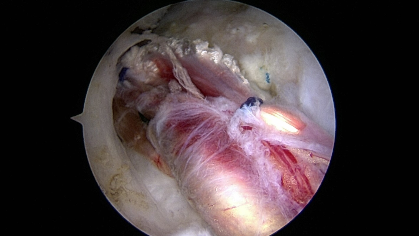Résultats : plus de 70% d’excellents résultats mais très dépendants de l’ancienneté de la déchirure. Les tendons réparés en avant et en arrière peuvent en partie compenser l’action du tendon central disparu.